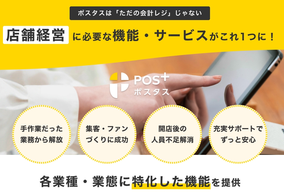 全部できるPOSレジ。クラウドPOSレジ【POS+(ポスタス)】